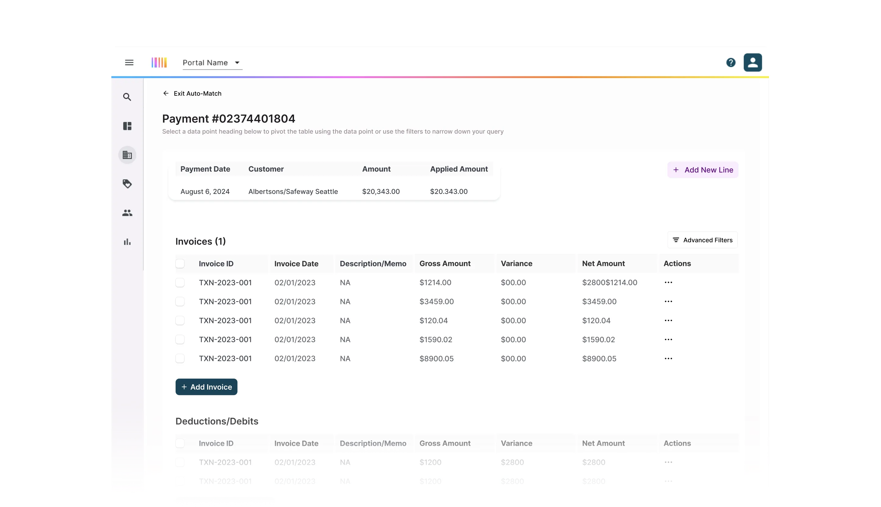 We automatically match payments to invoices, identify and flag discrepancies between payment and remittance information, and highlight any variances between received payments and expected amounts.